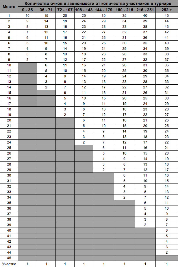 Следить за начислением очков в лидерборд можно прямо на этой странице. При равном количестве очков место в таблице определяется по сумме занятых мест в турнирах. Кто занимал более высокие места, тот и выше в таблице. В конце каждого месяца таблица обнуляется.
