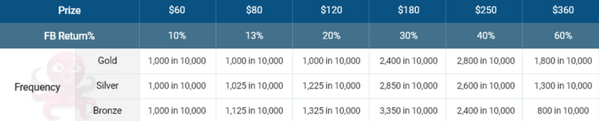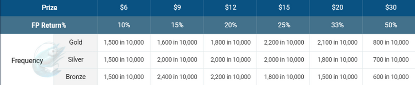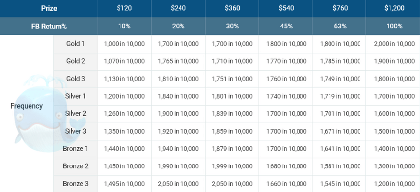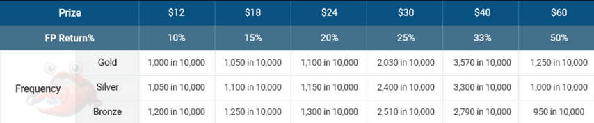 Например: для перехода со статуса Bronze Shrimp на Silver Shrimp нужно набрать 6,000 FP за 15 дней. Если за это время накопить очки не получилось, статус уменьшится на один, а игрок получит бонус в размере 10% от набранных FP.
