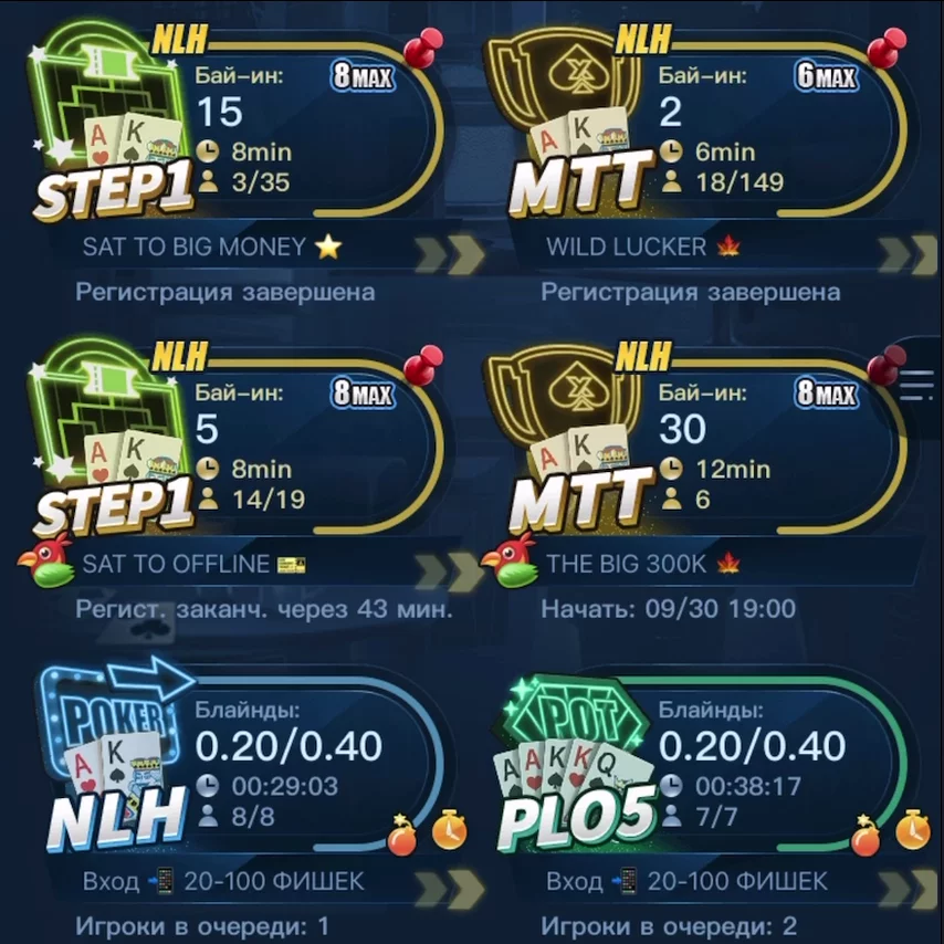 Турниров в мобильном приложении мало. Руководство идет по классическому пути: сперва поднимаем интерес к кэшу, а затем добавляем MTT и турнирные серии. Большинство сообществ проводит локальные события, вроде еженедельного воскресного турнира. В некоторых российских клубах можно найти сателлиты к офлайн-сериям.