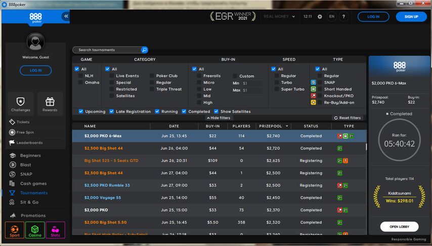 888poker по праву считается одним из лучших румов для новичков и любителей. Там проходит грандиозное количество фрироллов, в том числе и с очень приличными призовыми фондами. Расписание бесплатных турниров и актуальные пароли на фрироллы можно найти в специальном разделе на GipsyTeam. Но найдут там для себя плюсы и профессионалы: рум привлекает множество рекреационных игроков, в том числе и из одноименного казино.